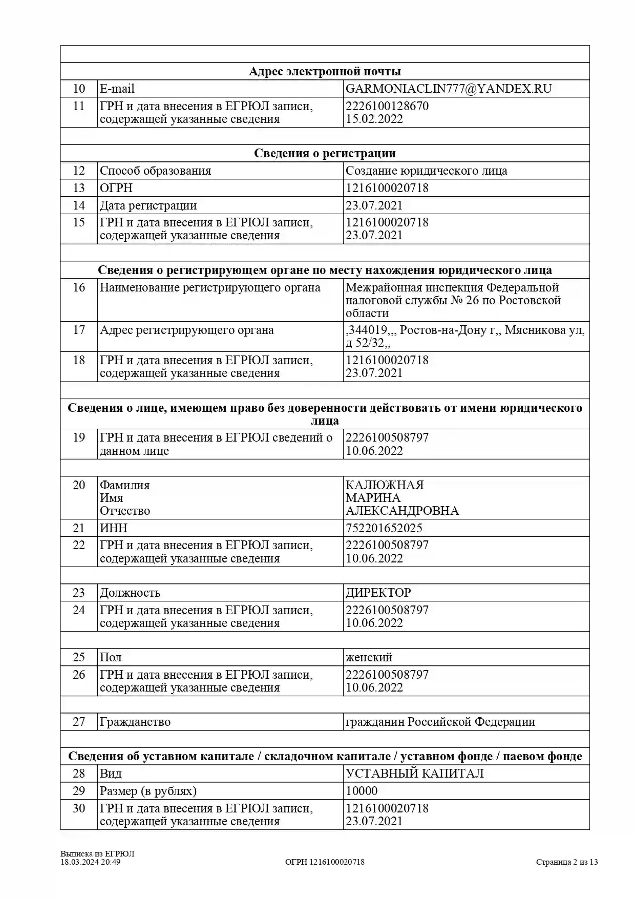 Выписка из ЕГРЮЛ